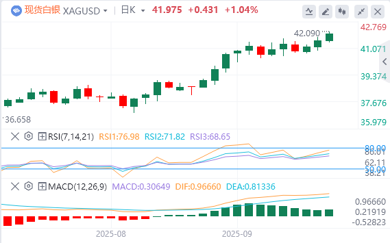 从技术角度来看,白色金属目前位于本月迄今(MTD)上升趋势通道的顶部边界附近。持续走强将标志着新的突破,并为延续近期既定的上升轨迹奠定基础。然而,每日相对强弱指数(RSI)略有超买,因此谨慎的做法是等待近期盘整,然后再为进一步上涨做好准备。