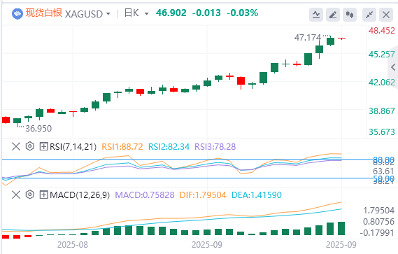 与此同时,任何跌破46.60-46.55美元区域或交易区间下限的修正回调都可能在46.00美元整数之前吸引一些买家,并且仍然有限。然而,持续突破并跌破上述关口可能会引发技术性抛售,并将白银/美元进一步拖向45.30-45.25美元的水平支撑位。接下来是45.00美元的心理关口,如果突破该关口,应该会为更深的损失铺平道路。