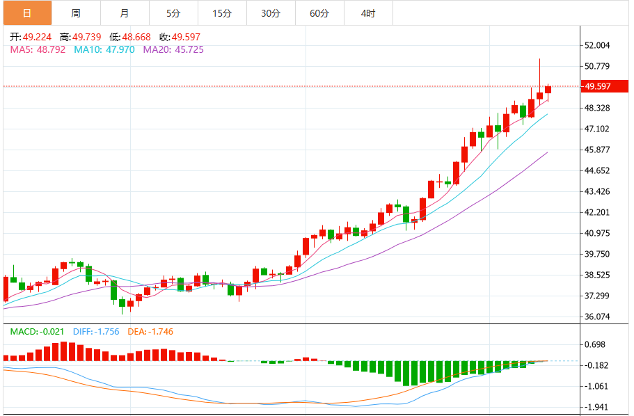 技术上,白银多头在短期内同样拥有显著的整体技术优势。白银多头的下一个上行价格目标是推动收盘价突破50.00美元的关键技术阻力位。空头的下一个下行价格目标是将收盘价压至45.00美元的关键支撑位下方。第一阻力位见于本周高点49.195美元,其次为50.00美元;第一支撑位见于47.85美元的隔夜低点,其次为47.00美元。