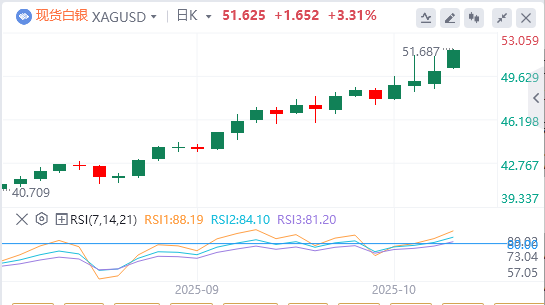 由于中美贸易担忧重新燃起,避险白银吸引了买家。美国总统唐纳德·特朗普表示,没有必要在即将举行的韩国峰会上与中国国家主席习近平会面,并威胁要对中国进口商品征收100%关税。然而,特朗普周日在TruthSocial上发帖指出,中国经济“会没事的”,美国希望“帮助中国,而不是伤害中国”。