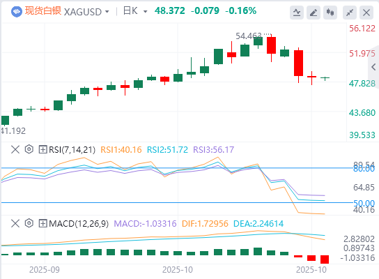 由于市场权衡超买担忧,白银价格在10月16日触及54.86美元的历史高点后回落。此外,对潜在中美贸易协议的乐观情绪改善了市场情绪,削弱了对包括白银在内的贵金属的需求。