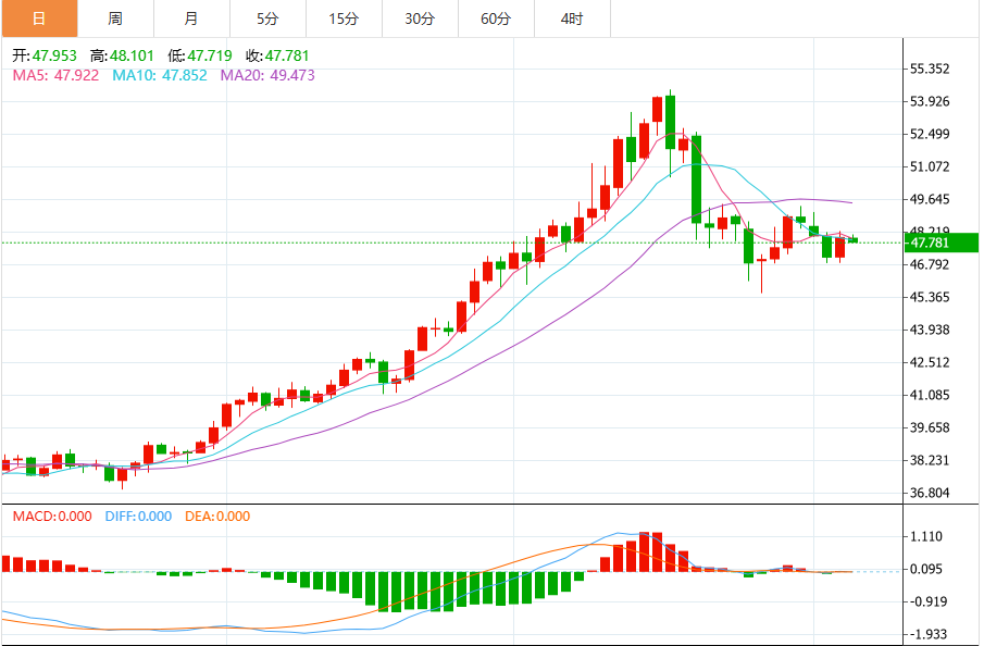 周四亚盘,现货白银震荡下行,徘徊于47.78附近,相对较高的美国国债收益率和坚挺的美元,美元指数在100.00心理水平上方稳居三个月高点,给白银施加了压力。