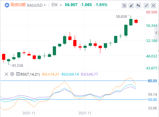 美国美联储(Fed)在12月政策会议上降息的预期增加,可能会为XAG/USD提供一定支持。市场已完全预期美国劳动力市场持续疲软及美联储官员上周鸽派言论,预计将降息25个基点。较低利率可能降低持有白银的机会成本,支持这种无收益贵金属。