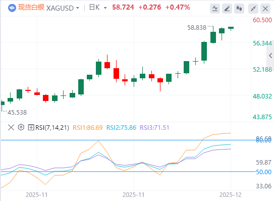 与此同时,亚洲交易谷,约58.15美元区间,紧接着是58.00美元,可能保护了直接的下行风险。任何进一步的修正下滑都可能被视为买入机会,并在57.65-57.60美元区间获得支撑。但若持续跌破,可能引发技术性抛售,将白银拖至57.00美元关口,最终跌至隔夜波动低点,约在56.60-56.55美元区间。
