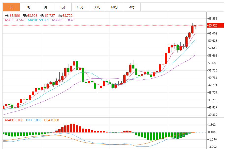周五(12月12日),现货白银目前位于63.730美元/盎司附近,涨幅为0.29%。