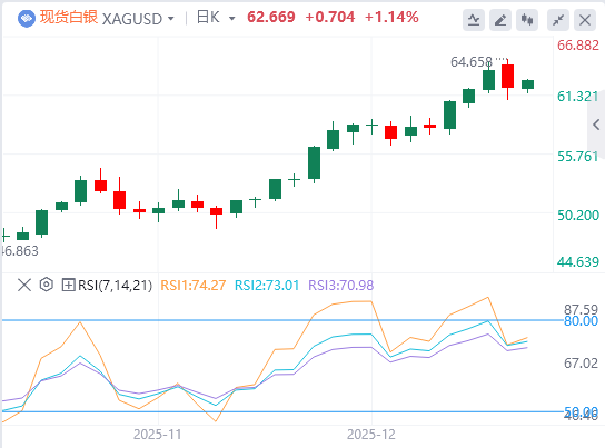 从技术角度看,白银获得不错支撑,并在100小时简单移动平均线(SMA)反弹。随后回升至62.00美元整数之上,验证了积极前景。然而,1小时图上的中性振荡器以及日线图上的相对强弱指数(RSI)略有超买,对于激进的多头交易者来说,仍需谨慎。