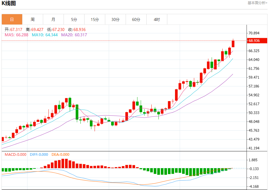 与此同时,小时/日线图上的相对强弱指数(RSI)位于70以上,发出超买信号,可能促使市场暂停。 100小时SMA上升至65.57美元,价格稳稳保持在其上方,保持短期趋势向上的偏向。 此外,移动平均收敛/发散(MACD)在正区域的0.19,持续上升,表明看涨动能在增强。