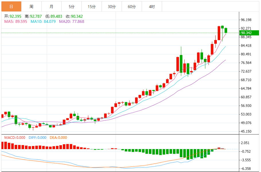 周五(1月16日),现货白银目前位于90.266美元/盎司附近,跌幅为2.34%。