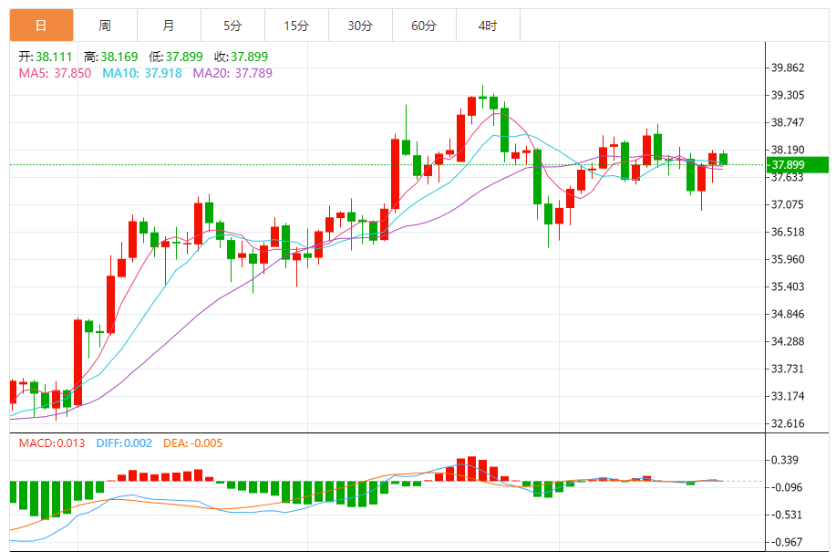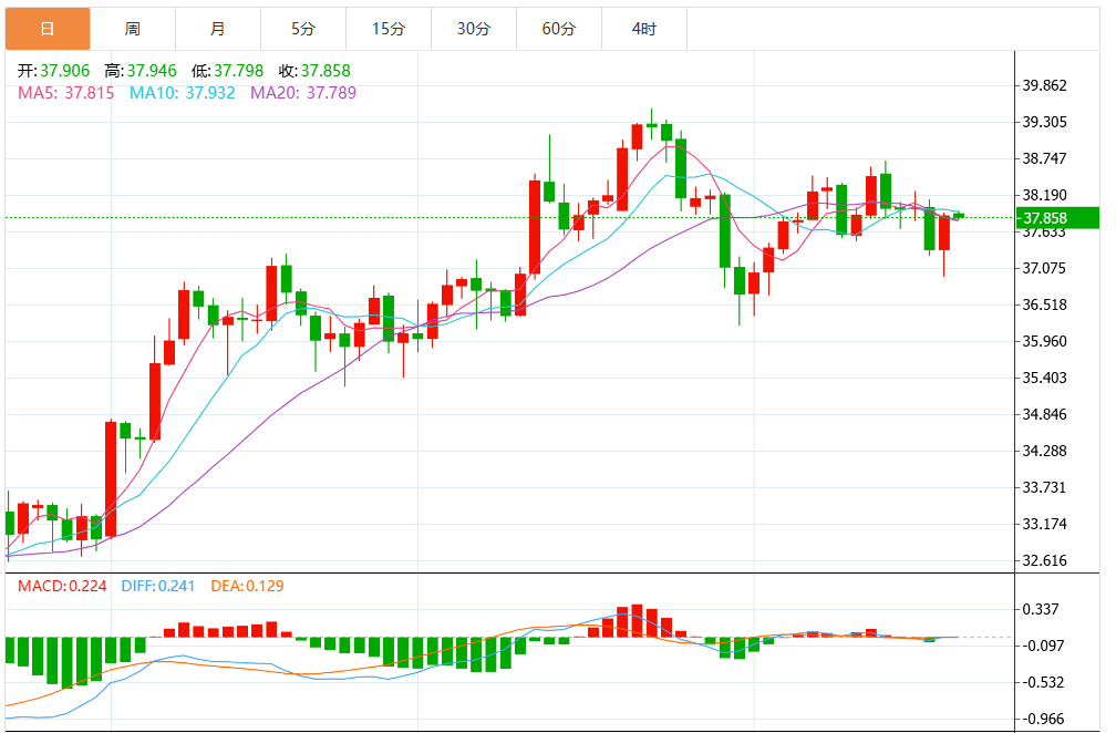 周五(8月22日),现货白银目前位于37.886美元/盎司附近,跌幅为0.61%。 (白银)价格在最后盘中交易中上涨,受到短期突破小幅看跌修正偏差线的影响,获得看涨势头,帮助其摆脱了A50的负面压力,此外(RI)出现了积极信号,在卸载了一些超买条件后,为近期实现更多收益开辟了道路。 (亚汇网编辑:章天)