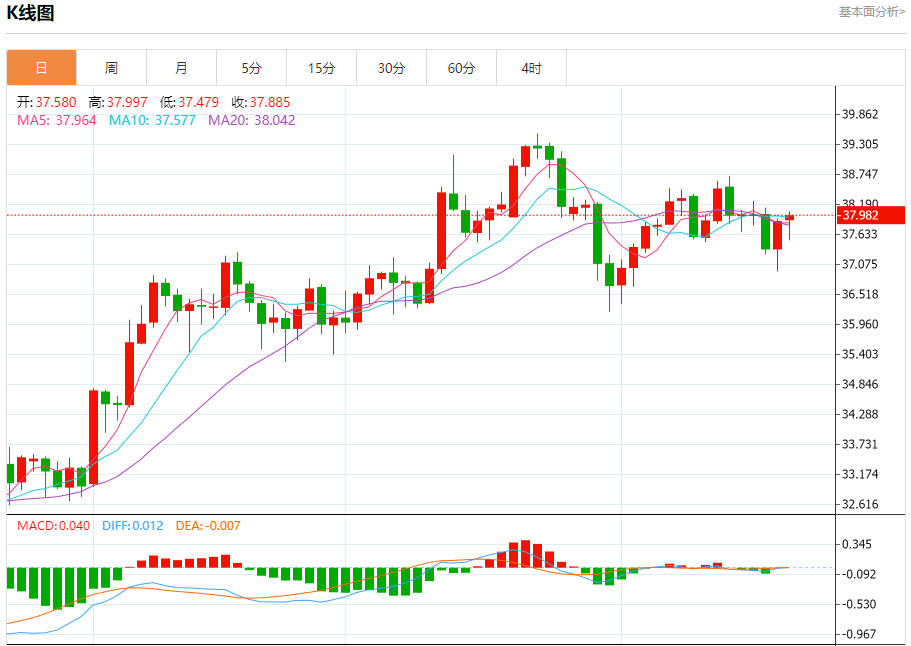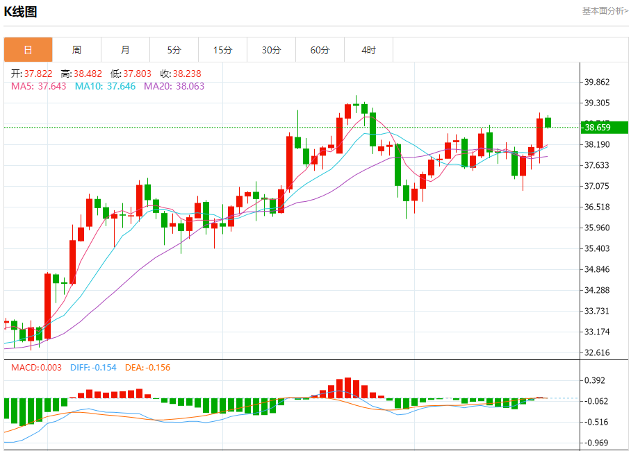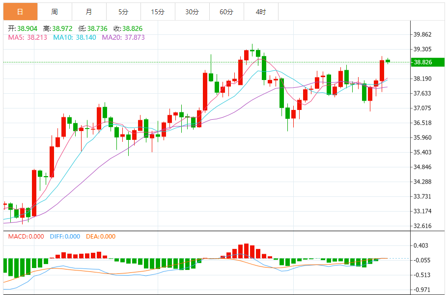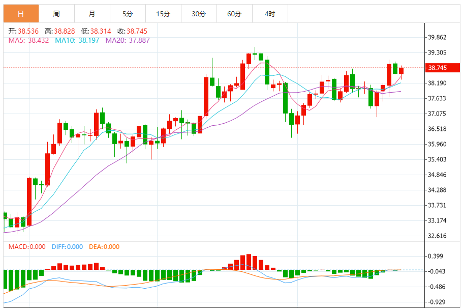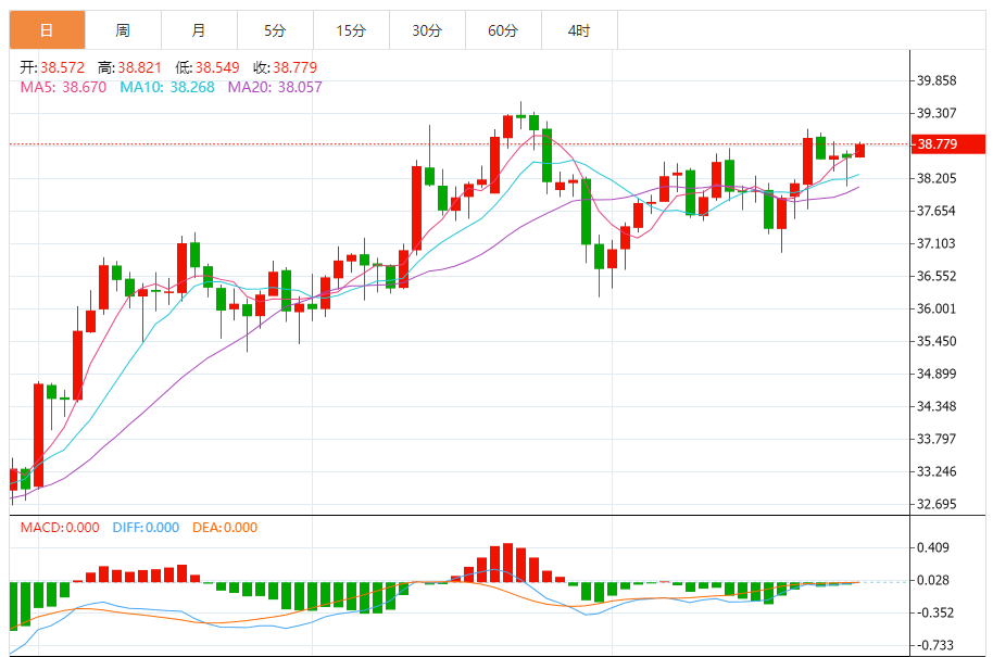 周一盘中,现货白银报38.659,跌幅0.58%。 今日分析:在38.50之上,看涨,目标价位为39.20,然后为39.50。 技术点评:即使我们不能排除持续调整的可能性,其时间长度上,应该是有限的。 支撑位:38.5038.2037.80 阻力位:40.0039.5039.20 (亚汇网编辑:冰凡)