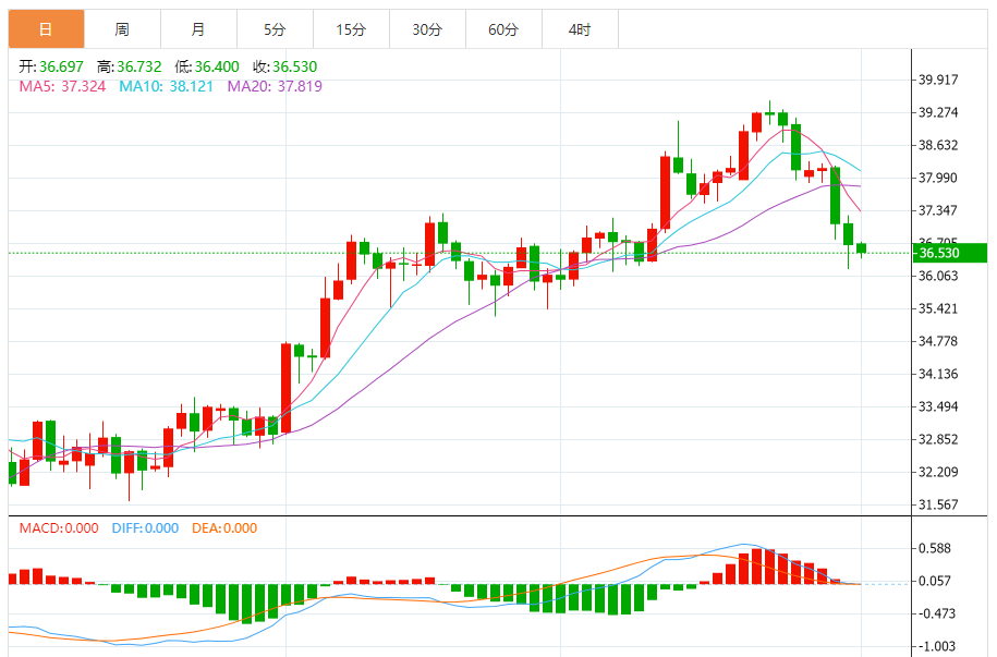 8月1日,周五欧市初盘,白银难以利用隔夜从36.20美元区域(近四周低点)的小幅反弹,以负面倾向交易。白金目前交投于36.65-36.60美元区域附近,当日下跌0.15%,但由于交易员选择等待美国非农就业(NF)报告的发布,因此缺乏后续抛售。 从技术角度来看,本周跌破近两个月的上升通道支撑位,该支撑位与200小时图上的4周期