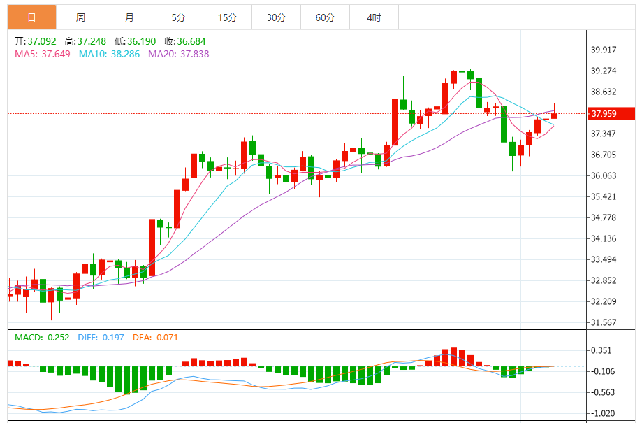 周四(8月7日),现货白银目前位于38.091美元/盎司附近,涨幅为0.76%。 (白银)价格在最后一盘中上涨,突破了当前阻力位37.90美元,主要看涨趋势在短期基础上占据主导地位,并在偏向线附近交易,并继续获得来自其A50上方交易的积极支撑。这一上涨是在它成功抛弃了(RI)上一些明显的超买状况之后发生的,这使得