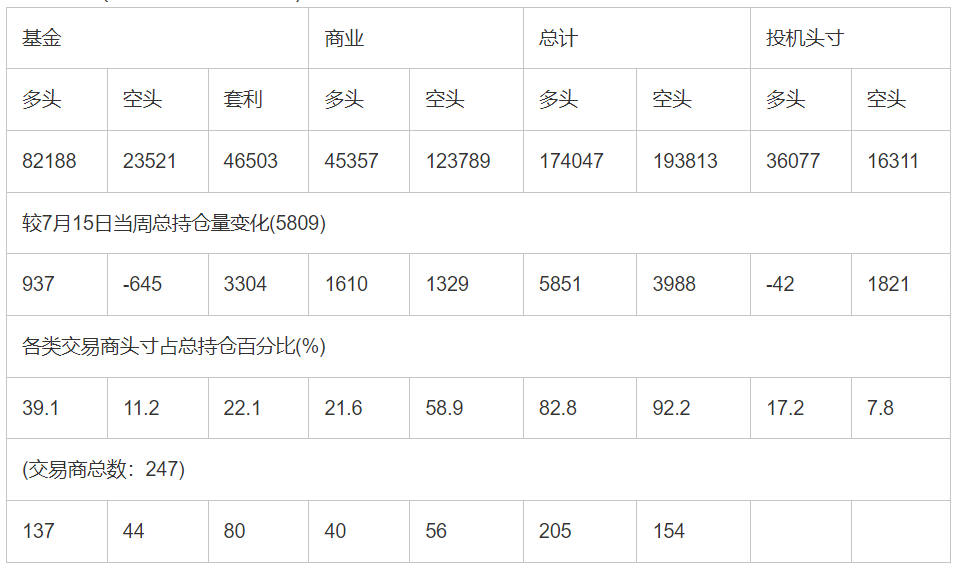 截止7月22日当周COX(纽约商品期货交易所)白银期货和期权分类持仓报告: 合约单位:(5000金衡盎司的合同)总持仓量:210124