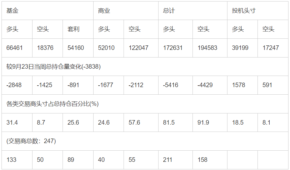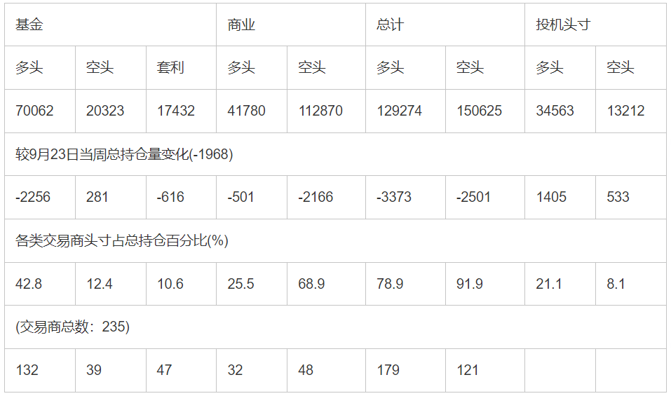 截止9月30日当周COX(纽约商品期货交易所)白银期货和期权分类持仓报告: 合约单位:(5000金衡盎司的合同)总持仓量:211830