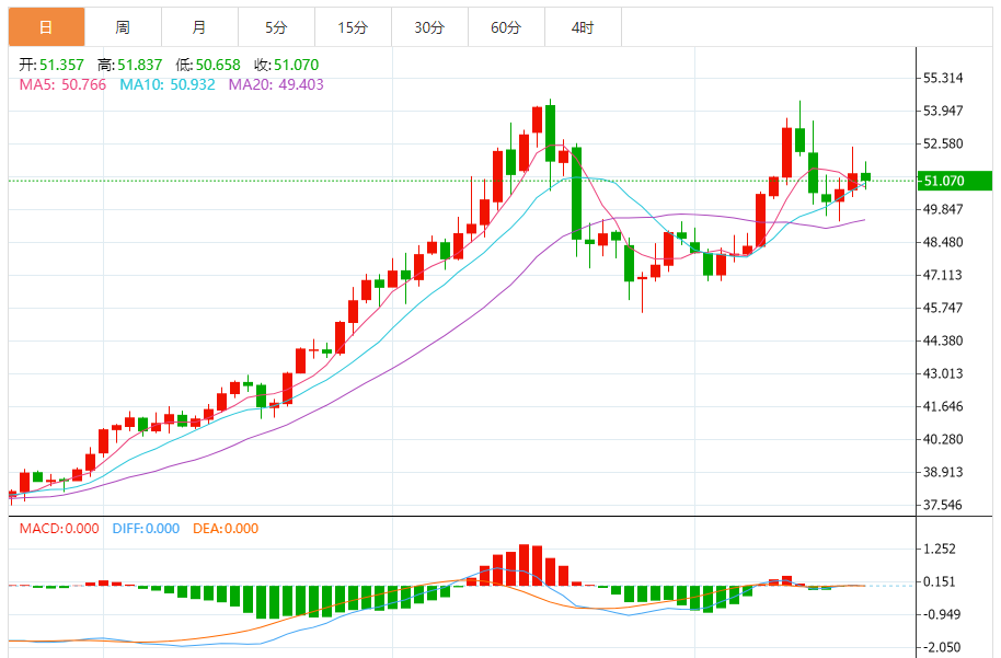 周三(11月19日),现货白银目前位于51.437美元/盎司附近,涨幅为1.50%。 白银价格在最后一个交易日继续上涨,超过了A50的阻力,摆脱了主要看涨趋势占主导地位的负面压力,并在短期内沿着次要趋势线交易。另一方面,我们注意到在达到超买水平后,相对强度指标出现了负重叠信号,这可能会减少价格即将到来的涨幅。