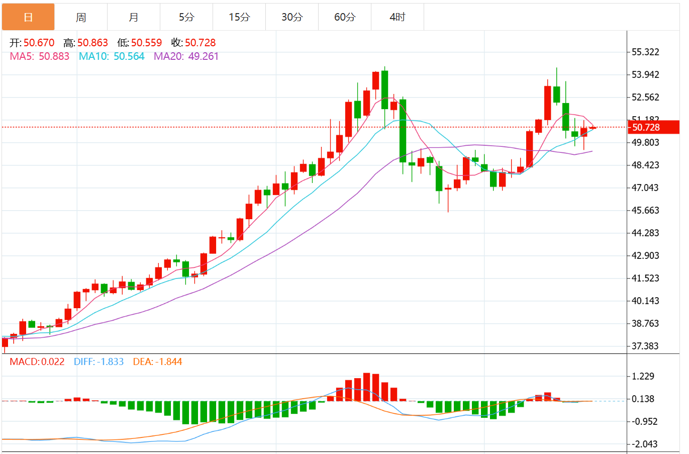 周三(11月26日),现货白银目前位于51.892美元/盎司附近,涨幅为0.85%。 白银价格在最后一个交易日上涨,原因是其在A50上方交易的积极压力仍在继续,此前卸载了其超买条件,为未来一段时间内实现更多收益开辟了道路,准备攻击52.35的关键阻力,A50的积极支撑仍在继续,短期主要看涨趋势占主导地位,并沿着该趋势