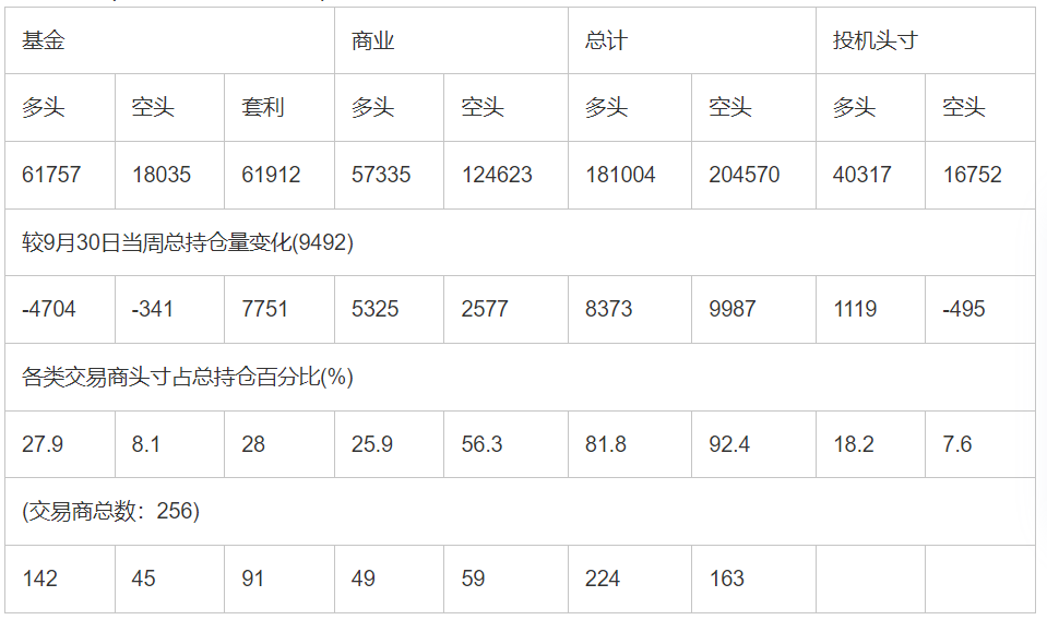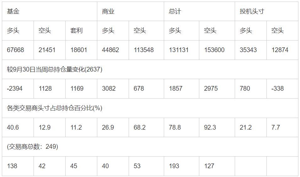 截止10月7日当周COX(纽约商品期货交易所)白银期货和期权分类持仓报告: 合约单位:(5000金衡盎司的合同)总持仓量:221322