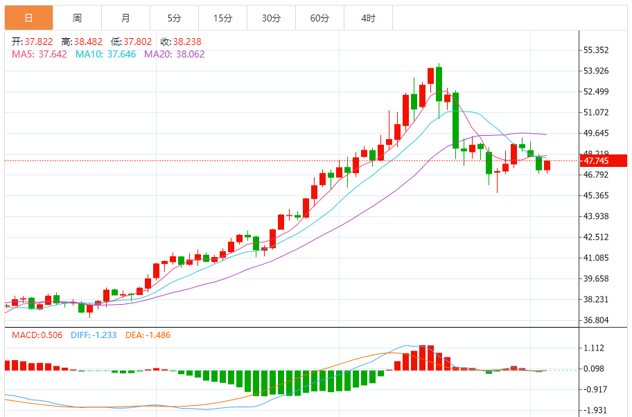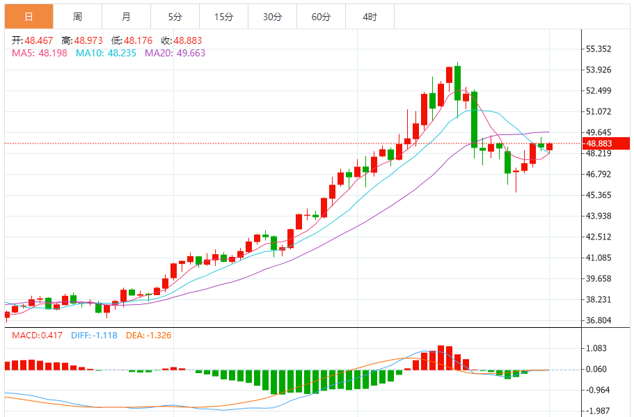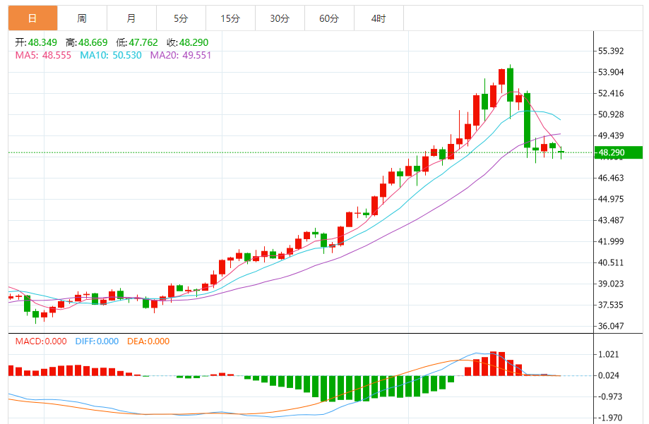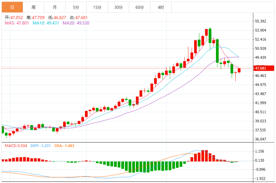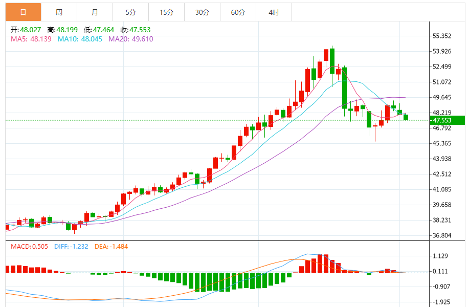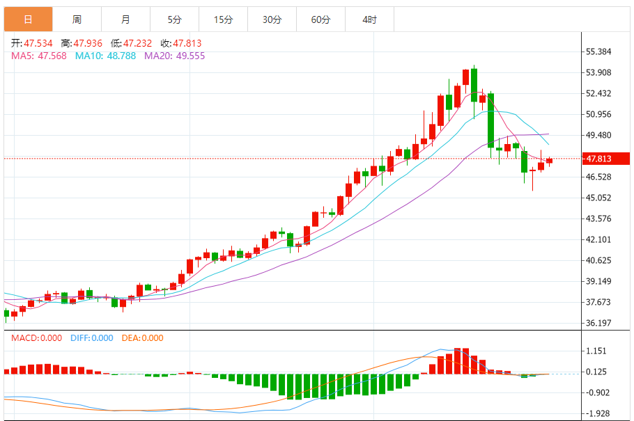 周四(10月30日),现货白银目前位于47.809美元/盎司附近,涨幅为0.57%。 由于当前在47.80美元的阻力位保持稳定,银价在最后一交易日的日内交易中下跌,在短期内看,受空头回调趋势支配,且由于其交易价格低于A50,负面压力持续,这减少了近期价格回升的可能性,尤其是在相对强弱指标上形成负背离,在相对于价格