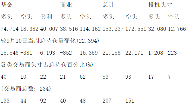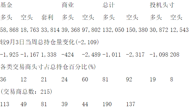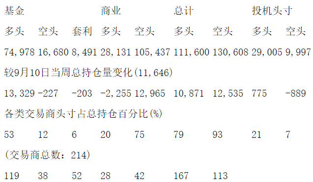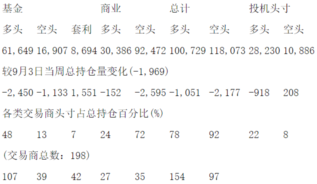 美国商品期货交易委员会(CFTC)最新公布截止9月10日当周COX白银期货分类持仓报告: 合约单位:5000金衡盎司总持仓量:128959