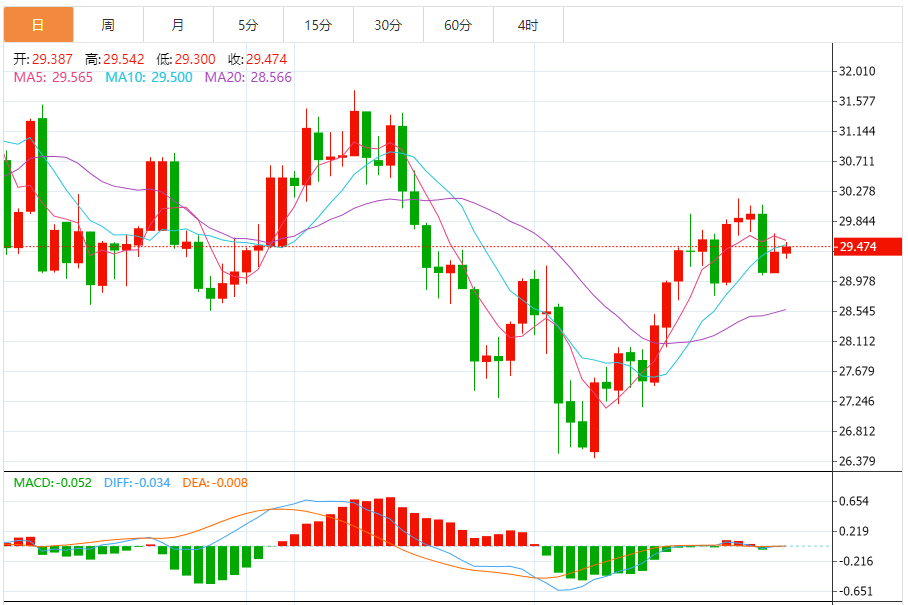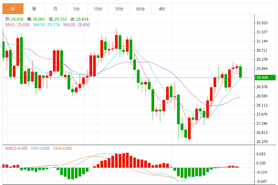 8月29日,周四欧市初盘,白银小幅上涨至29.45美元附近。中东持续的地缘政治紧张局势以及美联储(Fd)降息预期下美元疲软,为白色金属提供了一些支撑。 对美联储将于9月开始放松货币政策的预期对美元造成了一些抛售压力,并以美元计价的白银价格支撑了这一压力,因为它使白银对大多数买家来说更便宜。根据CFdWatch工