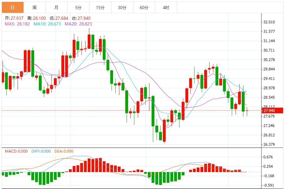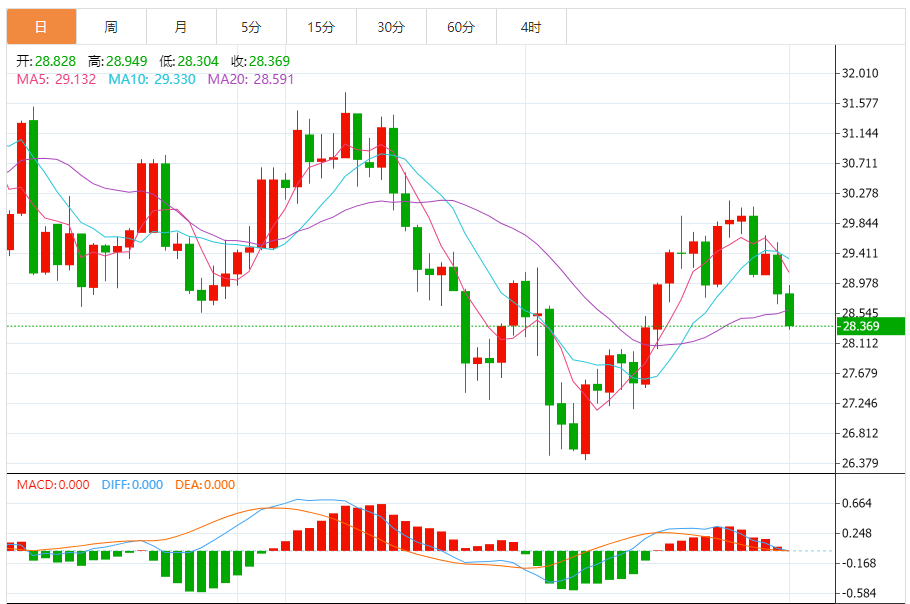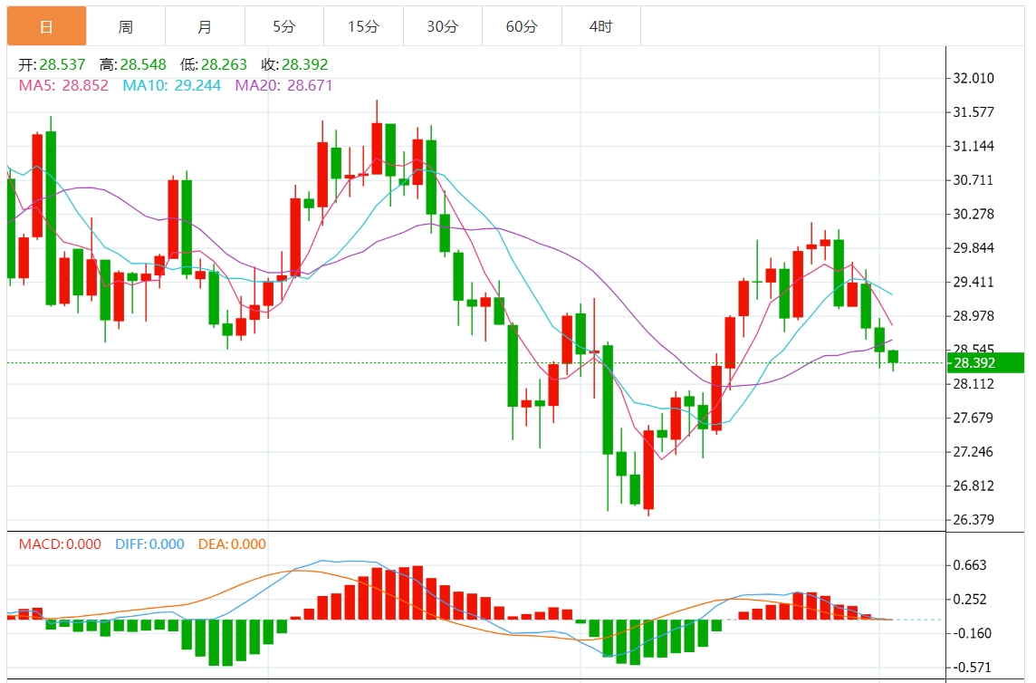 白银价格连续第三天扩大涨幅,周五欧洲早盘时段交投于每盎司28.79美元附近。 美联储(Fd)官员的鸽派言论可能会给白银等非收益资产带来支撑,这增加了美联储在9月份积极降息的可能性。较低的利率可能会使大宗商品资产对投资者产生吸引力,从而获得更好的回报。 芝加哥联储主席古尔斯比(AutanGoolb)周五表示,从劳