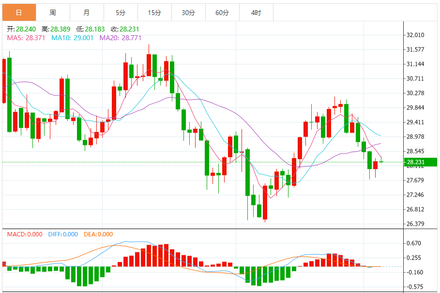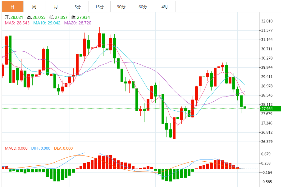 周三盘中,现货白银报28.082,涨幅0.21%。 今日分析:在28.07之下,看跌,目标价位为27.70,然后为27.50。 技术点评:只要28.07阻力位不被突破,向下跌破27.70位置的风险很高。 支撑位:27.7027.5027.30 阻力位:28.5528.4028.07 (亚汇网编辑:冰凡)