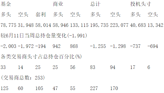 美国商品期货交易委员会(CFTC)最新公布截止6月18日当周COX白银期货和期权分类持仓报告: 合约单位:5000金衡盎司总持仓量:236418