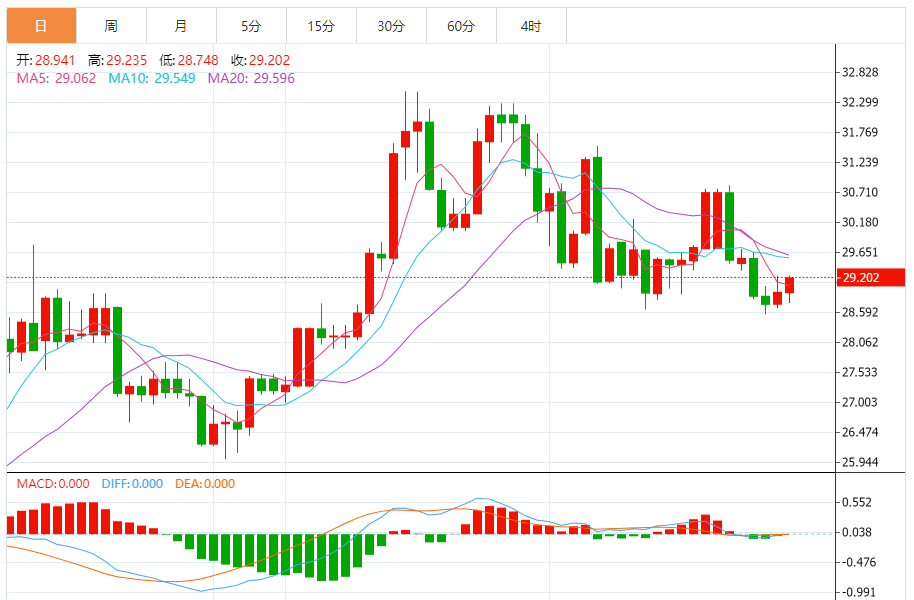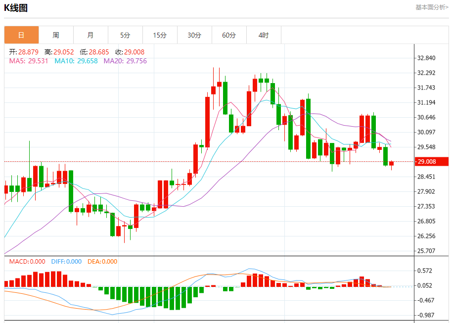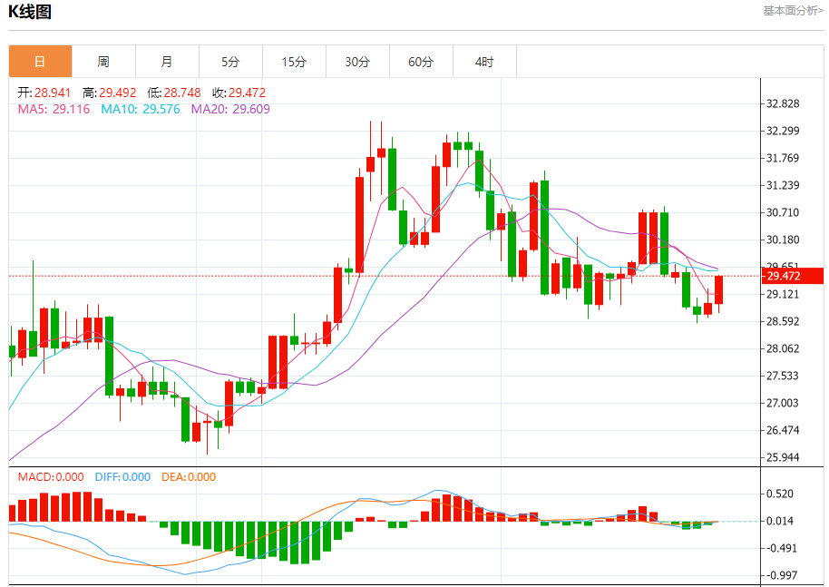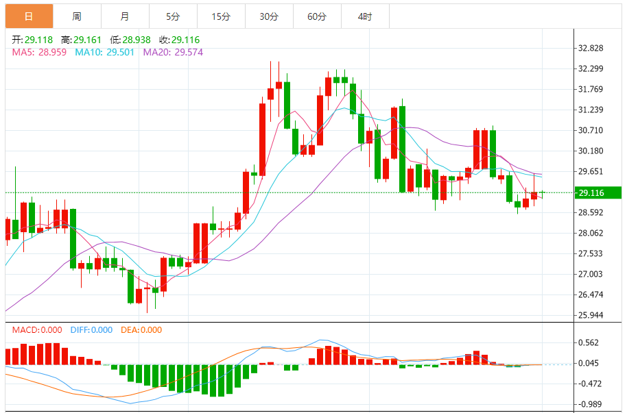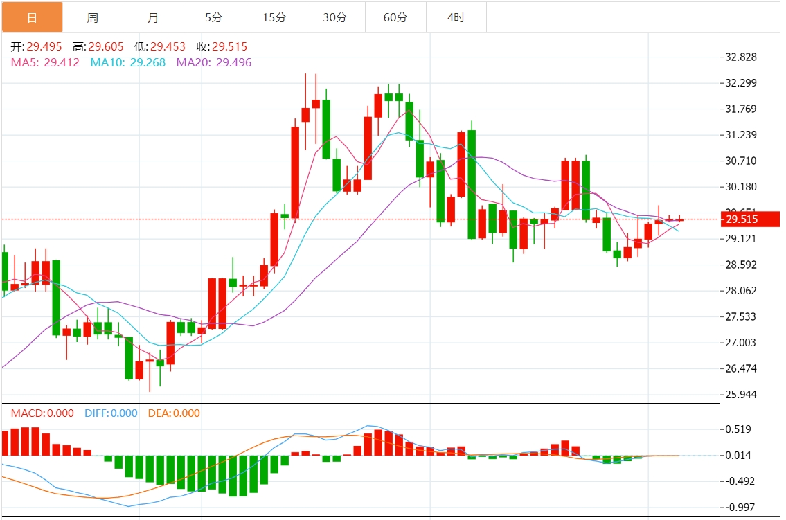 周二亚盘,白银小幅震荡,现报29.49附近,在美债收益率坚挺和美元走软的背景下,白银价格周一继续持平。技术前景显示,上周银价构筑看跌吞噬形态,相对强弱指标显示出看跌势头。 市场基本面分析 美元周一下跌0.3%,使黄金对持有其他货币的投资者更具吸引力。需要提醒的是,美元指数在日线级别出现类似“吞没”看空