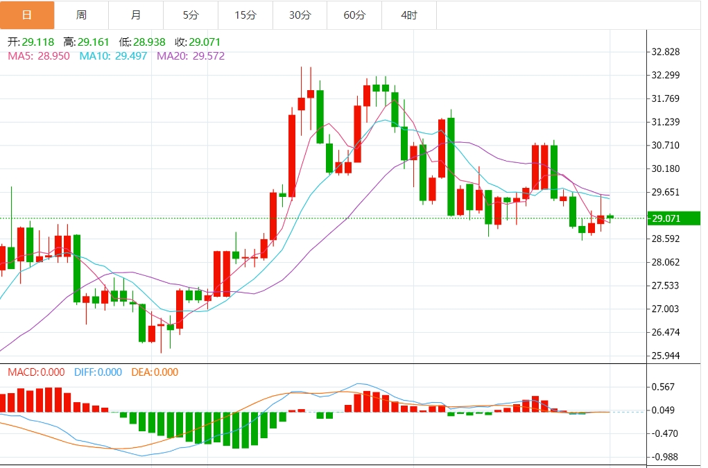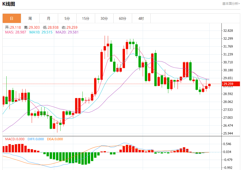 周一欧盘,白银价格保持稳定,前景乐观,可能会连续第三天延续连胜势头。周一欧洲早盘,黄金/美元货币对的交易价格约为每金衡盎司29.10美元。在美国通胀降温的迹象下,投资者评估美联储(Fd)的货币政策前景,非收益资产上涨。 白银市场基本面分析 周五,美国经济分析局报告称,美国通胀率已降至三年多来的最低年率