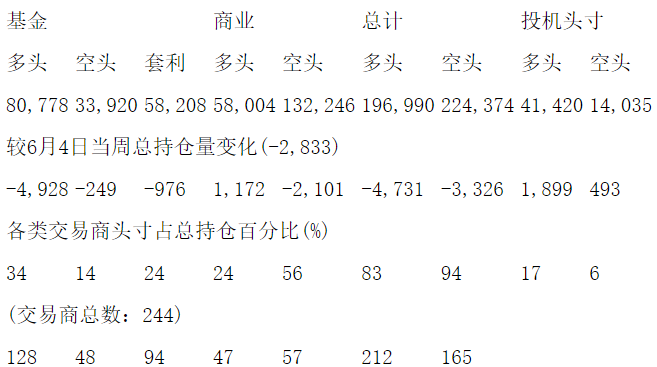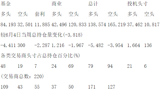 美国商品期货交易委员会(CFTC)最新公布截止6月11日当周COX白银期货分类持仓报告: 合约单位:5000金衡盎司总持仓量:176036