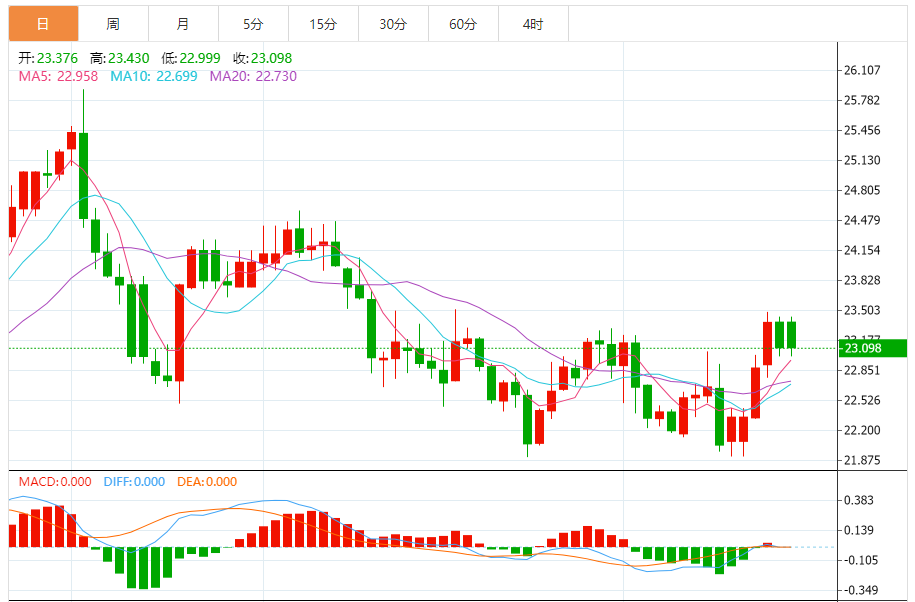 继周四银价触及日内低位22.35美元后大幅飙升,原因是美国国债收益率骤降,提振银价。银价交投于22.92美元,涨幅超过2.50%,交易商正期待突破搅动阻力。发稿时银价处在23.023美元,上涨0.1%。 银价价格分析:技术前景 由于银价仍遇阻100、50和200日移动均线(DA),因此仍保持中性偏向下行的走势。不过,如果日收盘于2月1