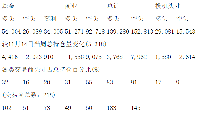 美国商品期货交易委员会(CFTC)最新公布截止11月21日当周COX白银期货和期权分类持仓报告: 合约单位:5000金衡盎司总持仓量:168361