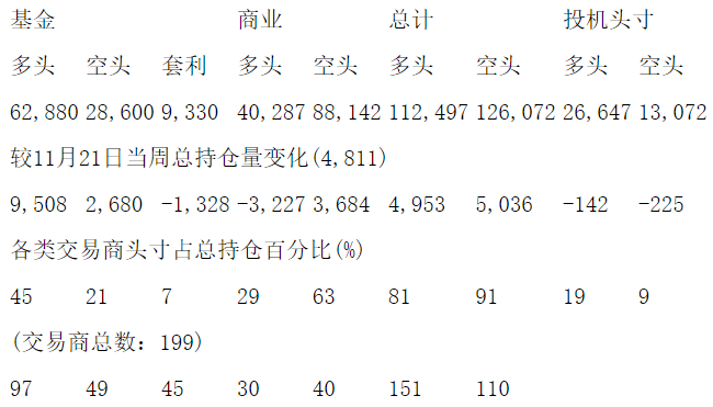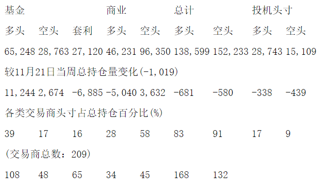 美国商品期货交易委员会(CFTC)最新公布截止11月28日当周COX白银期货分类持仓报告: 合约单位:5000金衡盎司总持仓量:139144