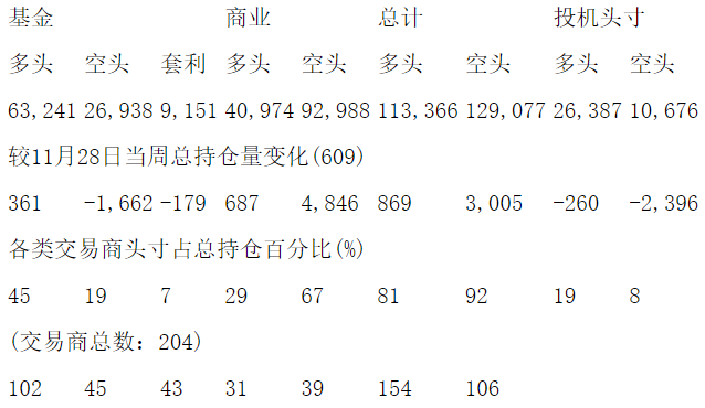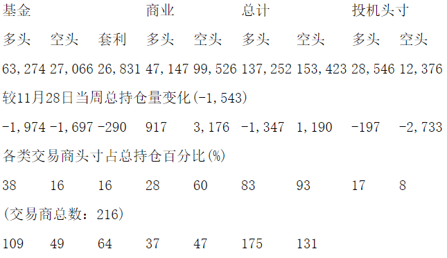 美国商品期货交易委员会(CFTC)最新公布截止12月5日当周COX白银期货分类持仓报告: 合约单位:5000金衡盎司总持仓量:139753