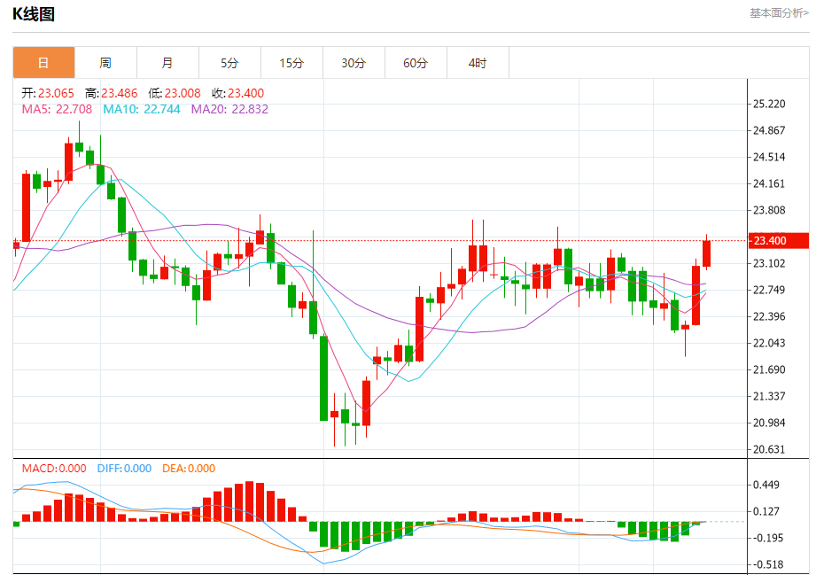 基本消息面 周三(11月15日),现货白银维持日内升势,银价现报23.25美元/盎司附近。银价已经确认突破重要水平23.00美元/盎司,这为银价后市进一步上升铺平道路。 相关新闻消息 受美元大跌推动,现货白银周二收市暴涨3.48%,报23.07美元/盎司。 银价昨日强势反弹,并收在23.00美元/盎司上方