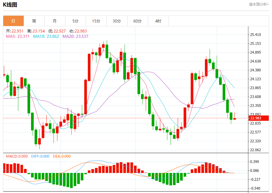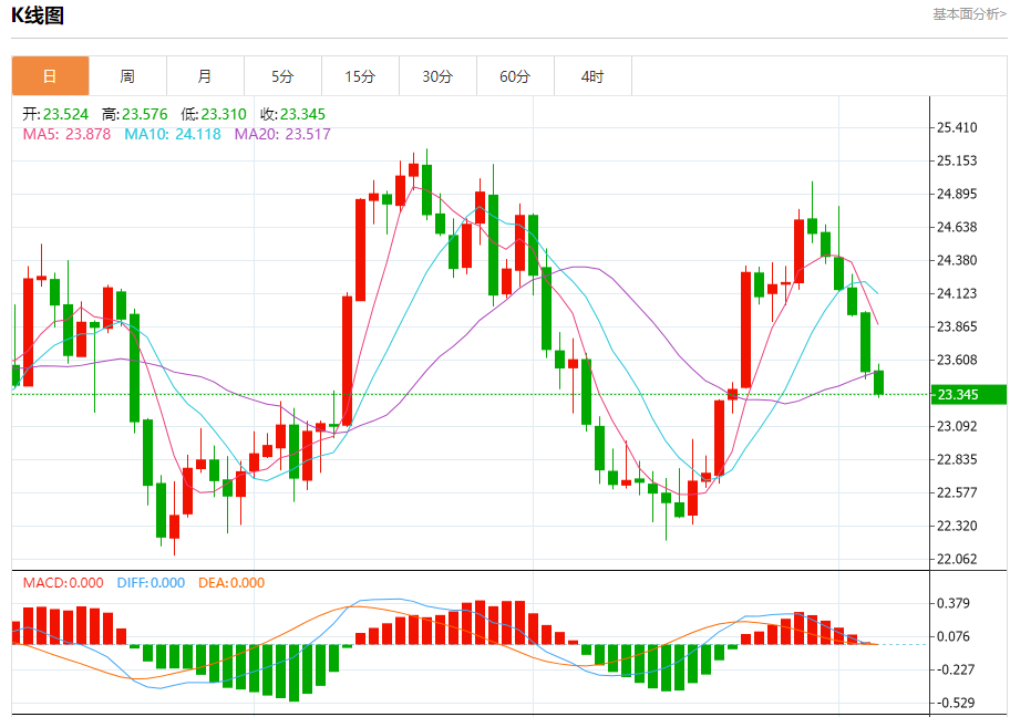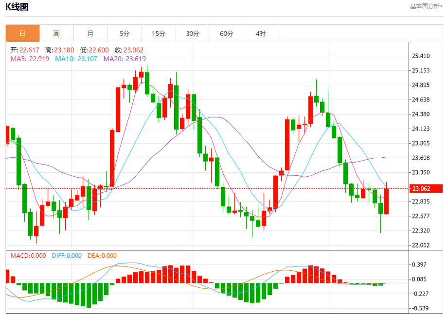 基本消息面 周四(9月7日),现货白银维持日内跌势,目前银价交投在23.05美元/盎司附近。根据conoi.co,银价昨日触及目标价位23.00美元/盎司,若攻克这一水平,这将为银价进一步大跌打开空间。 相关新闻消息 现货白银周三收市重挫1.5%,收报23.17美元/盎司,盘中银价一度跌至23.00美元/盎司。 银价周三成功触