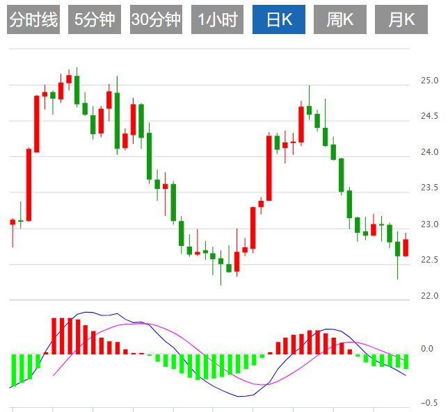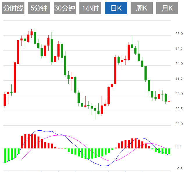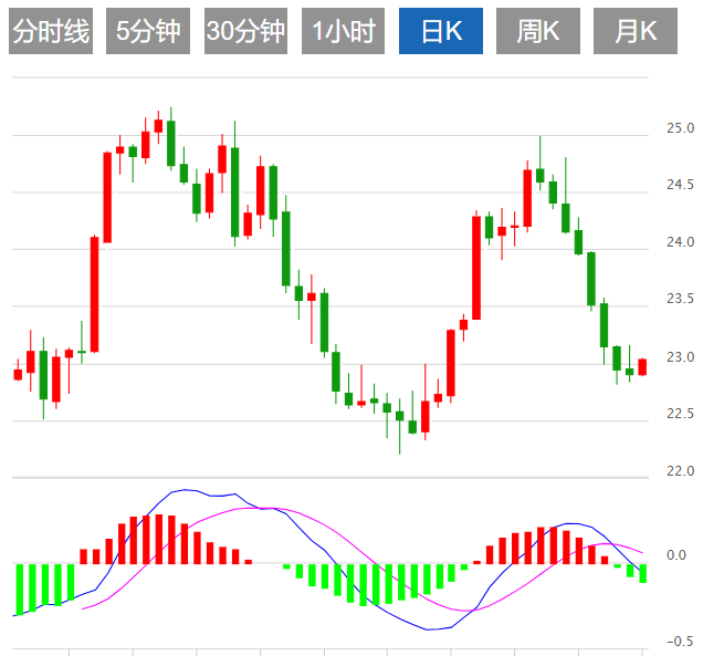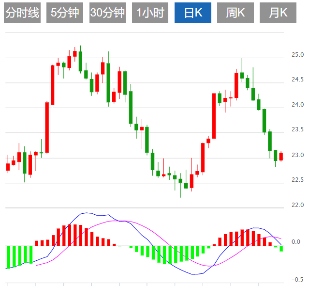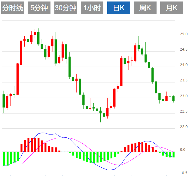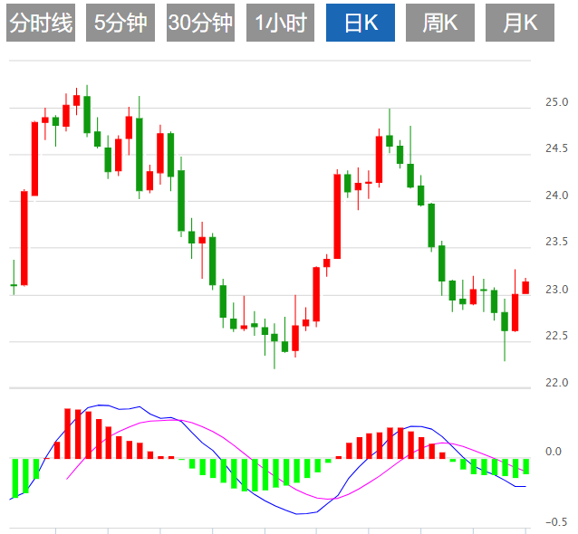 周一亚盘,白银在新一周的第一天吸引了一些买家,结束了连续八天的下跌,并在亚洲时段回升至23.00美元以上。然而,白色金属仍处于两周半低点的冲击范围内,周五重新测试的区间约为22.85美元至22.80美元,似乎仍有可能进一步下跌。 白银技术走势分析 日线图上的振荡因素一直在获得负面吸引力,并远离超卖区,这一事