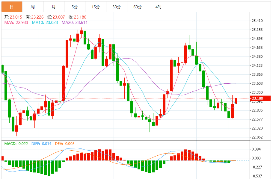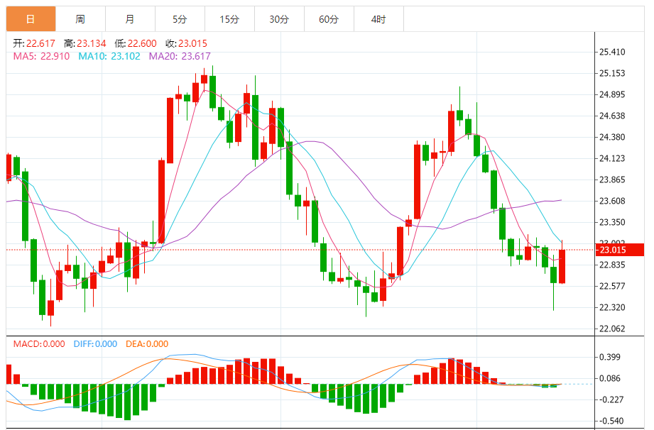 基本消息面 周五(9月8日),现货白银短线突然快速上升,目前银价升至23.15美元/盎司附近。根据conoi.co,银价在23.00美元/盎司受到坚固支撑,只要守住该位,银价后市可能仍有进一步大涨的空间。美元指数延续日内跌势,目前接近104.75。美元走软令银价受益。 相关新闻消息 银价未能成功跌破23.00美元/盎司,而是
