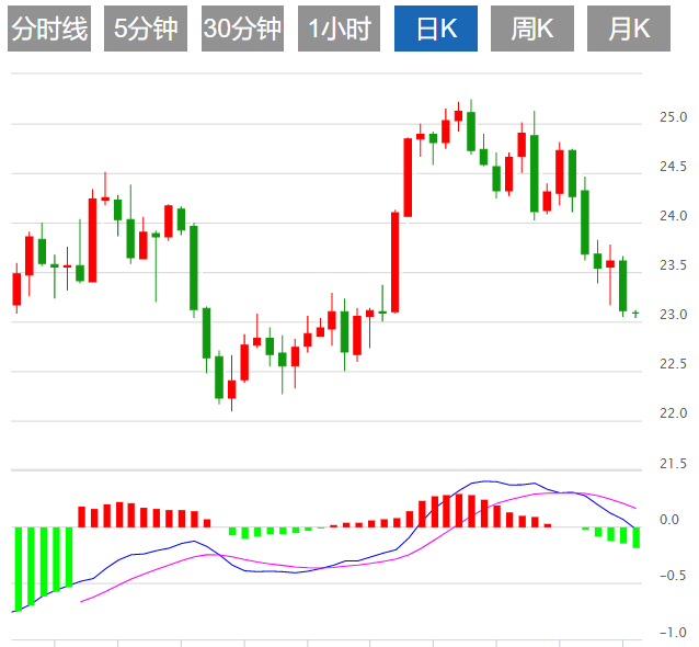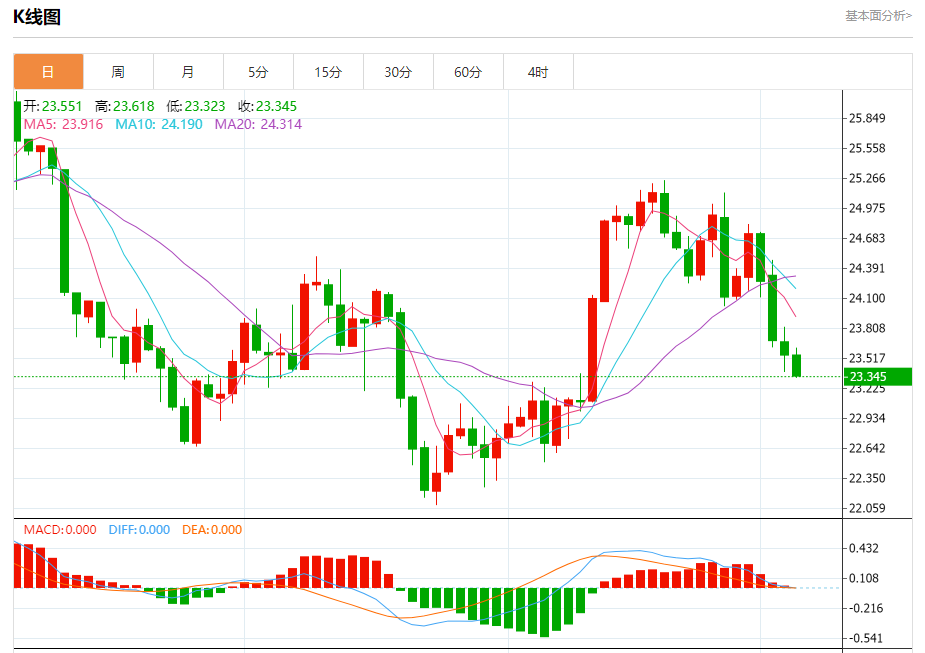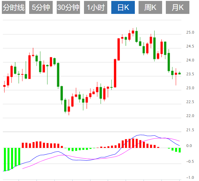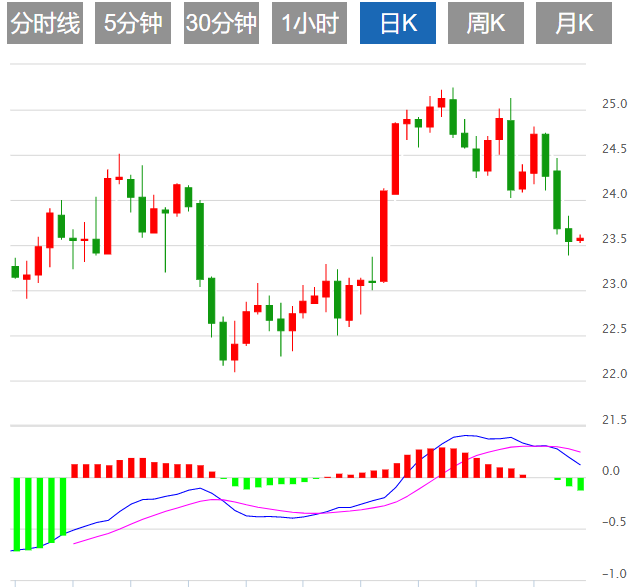 周二欧盘,白银吸引力了部分多头并收复前日大跌至23美元(接近一个月低点)整数关口的部分跌势。不过该白色金属难以利用该行情并在欧市早盘陷入震荡。此外技术指标表明白银/美元阻力最小路径为下跌。 银价隔夜跌破23.30美元汇合处(包括6-7月升势的61.8%回档位)以及自数月低点以来的上行趋势线(6月)被视为看跌交易员