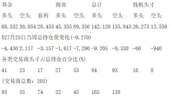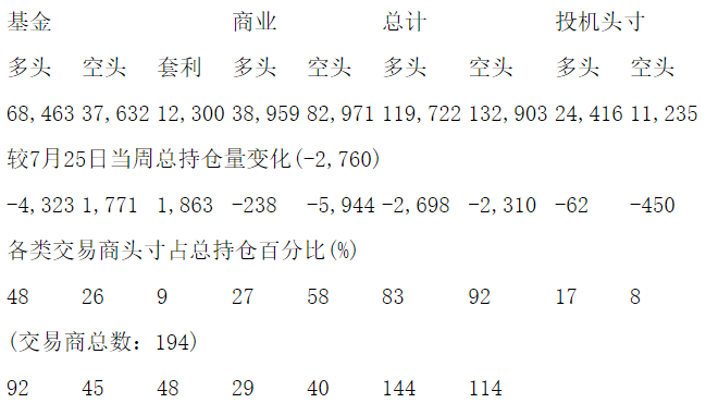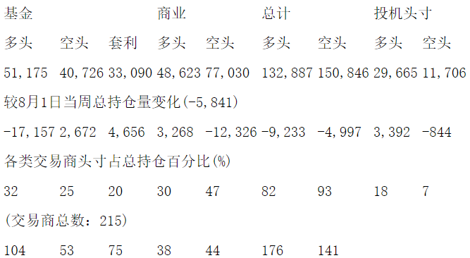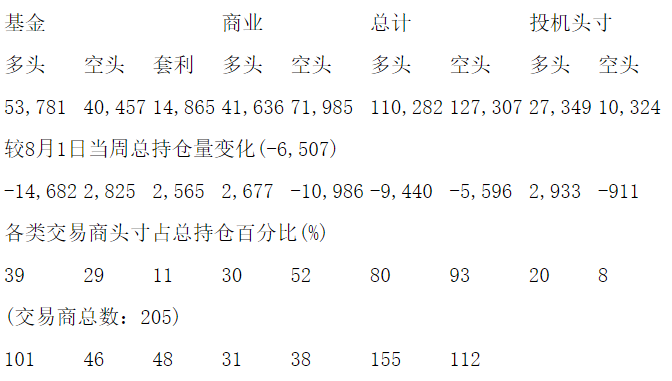 美国商品期货交易委员会(CFTC)最新公布截止8月1日当周COX白银期货分类持仓报告: 合约单位:5000金衡盎司总持仓量:144138