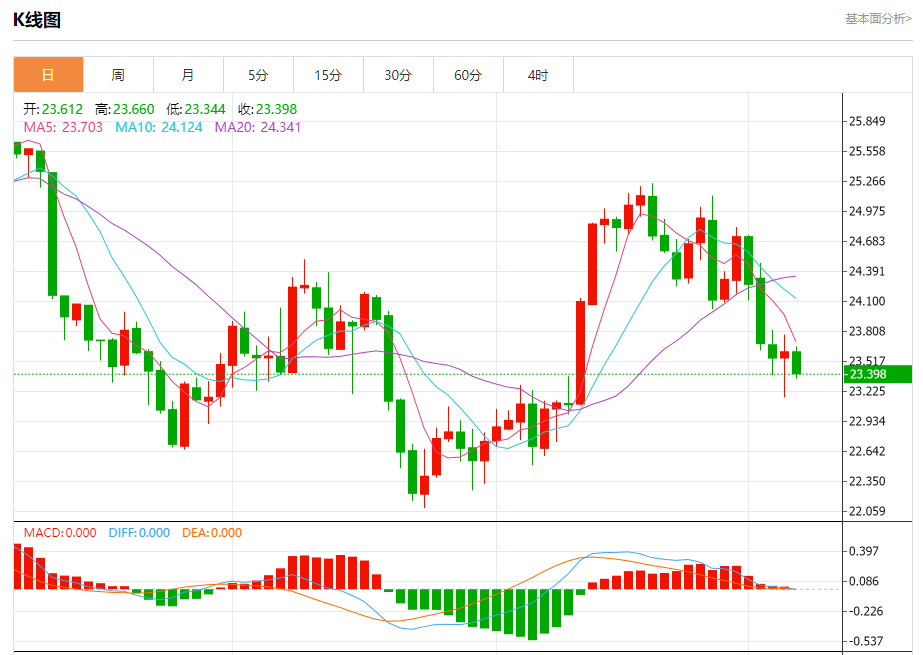 周四盘中,现货白银报23.411,跌幅1.19%。 今日分析:在23.83之下,看跌,目标价位为23.25,然后为23.10。 技术点评:只要依旧存在23.83阻力位,价格波动存在看跌的趋势。 支撑位:23.2523.1022.98 阻力位:24.1524.0023.83 (亚汇网编辑:冰凡)