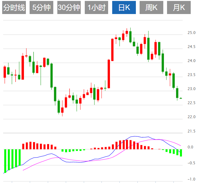 8月11日,周五亚市盘中,白银在22.75美元附近刷新盘中高点,延续前日自3月14日以来上行支撑线的反弹修正行情。 不过值得指出的是,ACD信号看跌,加上200日均线和五个月前的支撑线汇合处在23.25-30美元附近挑战白银多头。 之后,6月末的震荡低点在24美元附近,6月峰值在24.55美元附近,将吸引白银多头。 不过此前的月