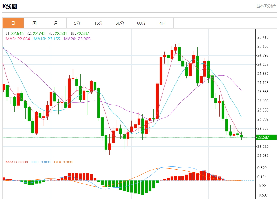 周四欧盘,白银盘中获得了一些积极的吸引力,目前似乎已经结束了连续三天的下跌,达到了一个多月的低点,约为前一天触及的22.60美元。在欧洲交易日的早期,白金属一直保持着复苏的涨势,目前在22.80美元附近交易,当天上涨了0.60%以上,尽管技术设置仍然倾向于看跌交易员。 投资者普遍等待晚间将出炉的美国7月份CI数据