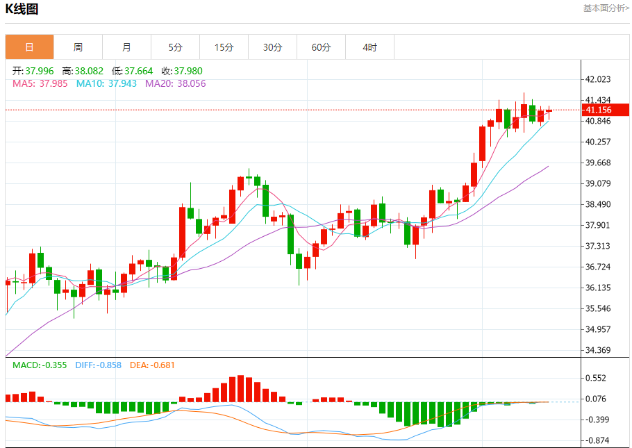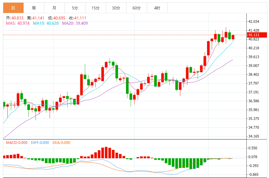 周三欧盘,银价(白银/美元)在周三早盘欧洲时段收复了前一交易日的近期跌幅,交投于每盎司41.10美元附近。日线图的技术分析表明,贵金属价格在上升通道模式内横盘整理,表明市场偏向看涨。 14天相对强弱指数(RI)略低于70水平,表明银价徘徊在超买区域,尽管强劲的上升趋势依然存在,买方牢牢掌控市场。此外,XAG/
