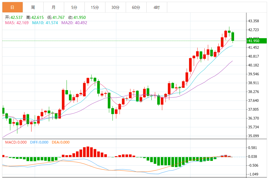 周三亚盘,银价(白银/美元)在周三亚洲交易时段暴跌至约42.05美元。白银价格在接近42.80美元的14年高点后回落,部分原因是获利了结。交易者为周三晚些时候美国联邦储备委员会(美联储)的利率决策做好准备,以寻求新的推动力。 白银市场基本面行情分析 由于美中贸易紧张局势缓解,部分获利了结和改善的风险情绪使
