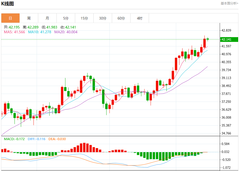 9月15日,周一亚市盘中,白银连续第四天上涨至42.25美元附近。美联储降息的预期打压美元并支撑以美元计价的大宗商品价格。美联储利率决定将于周三晚些时候成为焦点。 美联储基准利率目前在4.25%至4.50%的区间内。市场预计美联储将在周三即将举行的会议上降息。这将是自2024年12月以来的首次降息。较低的利率可能会降低