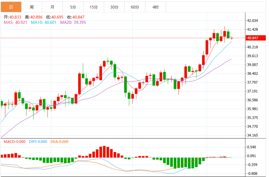 周四盘中,现货白银报41.030,跌幅0.25%。 今日分析:在41.00之上,看涨,目标价位为41.45,然后为41.65。 技术点评:RI技术指标在50%中性区域之上。 支撑位:41.0040.7040.50 阻力位:41.9541.6541.45 (亚汇网编辑:冰凡)