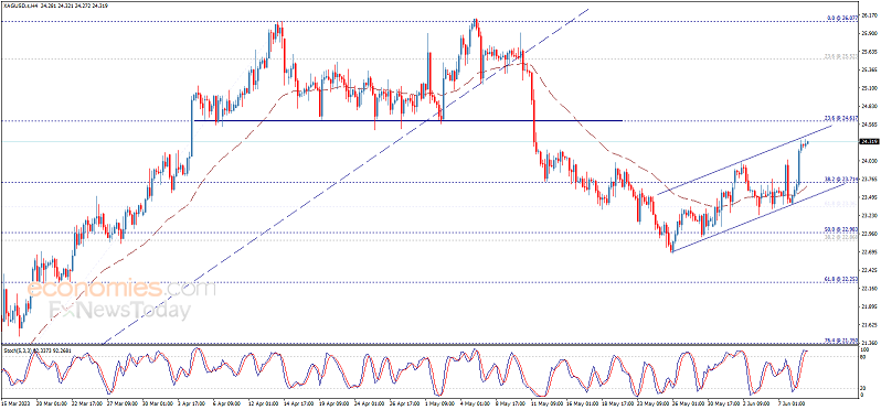 白银价格获得买入价,以捍卫前一天从短期关键支撑位反弹后的修正性反弹,周三亚洲市场早盘在23.60美元附近出现温和买入价。 在此过程中,白银将从200小时移动平均线(HA)和5月30日起的向上倾斜支撑线(接近23.60-65美元)的汇合处反弹。 除了从重要支撑位反弹之外,稳定的RI(14)线也让白银的买家充满希望。 然而,持续了