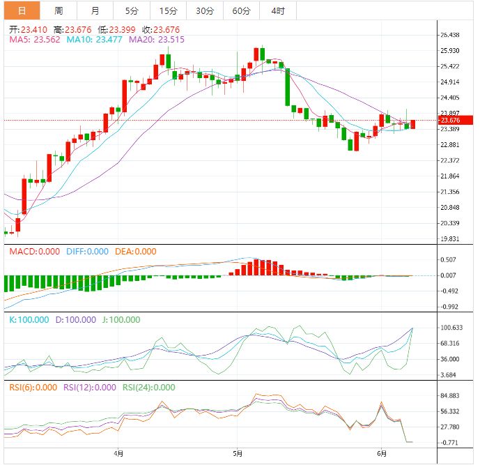 基本消息面 周三(6月7日)欧市早盘,现货白银延续日内跌势,银价现报23.40美元/盎司左右,日内重挫约0.8%。 相关新闻消息 白银价格多次尝试跌破看涨通道的支撑线,这支持银价在未来几个交易日继续看空趋势。需要提醒的是,我们对于银价的下一目标位于23.00美元/盎司。 假如银价跌破上述目标价位,这将导