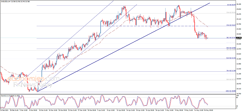 由于美国国债收益率上升,银价在上周跌破24.00美元后,回落至23.60美元区域,其中10年期基准国债利率为3.721%,攀升超过4个基点。这削弱了对避险资产(即黄金和白银价格)的兴趣,并缓冲了美元的下跌。在撰写本文时,白银的交易价为23.62美元,在亚洲交易时段开始时几乎持平。 白银继续验证双顶图形模式,白银价格在双
